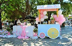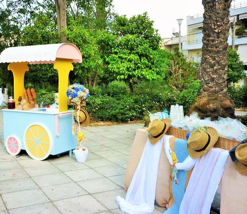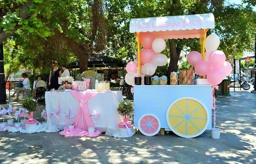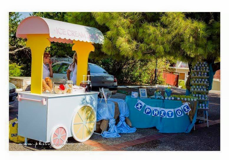 Στο Sugar by Miranda σας διαθέτουμε για την βάπτιση του παιδιού σας ένα καρότσι παγωτού μοναδικό σε design , άψογο service το οποίο περιλαμβάνει συνεργάτες που σερβίρουν το παγωτό στους καλεσμένους σας με κατάλληλη ενδυματολογική εμφάνιση,απεριόριστη ποσότητα παγωτού,4 γεύσεις παγωτού,μεγάλη ποικιλία σε toppings όπως ,τρούφες,σιρόπια,χειροποίητα μπισκότα και ξηρούς καρπούς και φυσικά δώρο με τον παγωτατζή της βάπτισης σπιτική λεμονάδα.